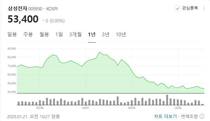 시장 반응: 삼성전자의 주가는 최근 몇 년간의 상승세를 이어오다가, 2024년 하반기부터 조정 국면에 접어들었습니다. 이는 반도체 수요 감소와 관련된 우려가 반영된 결과입니다 1.